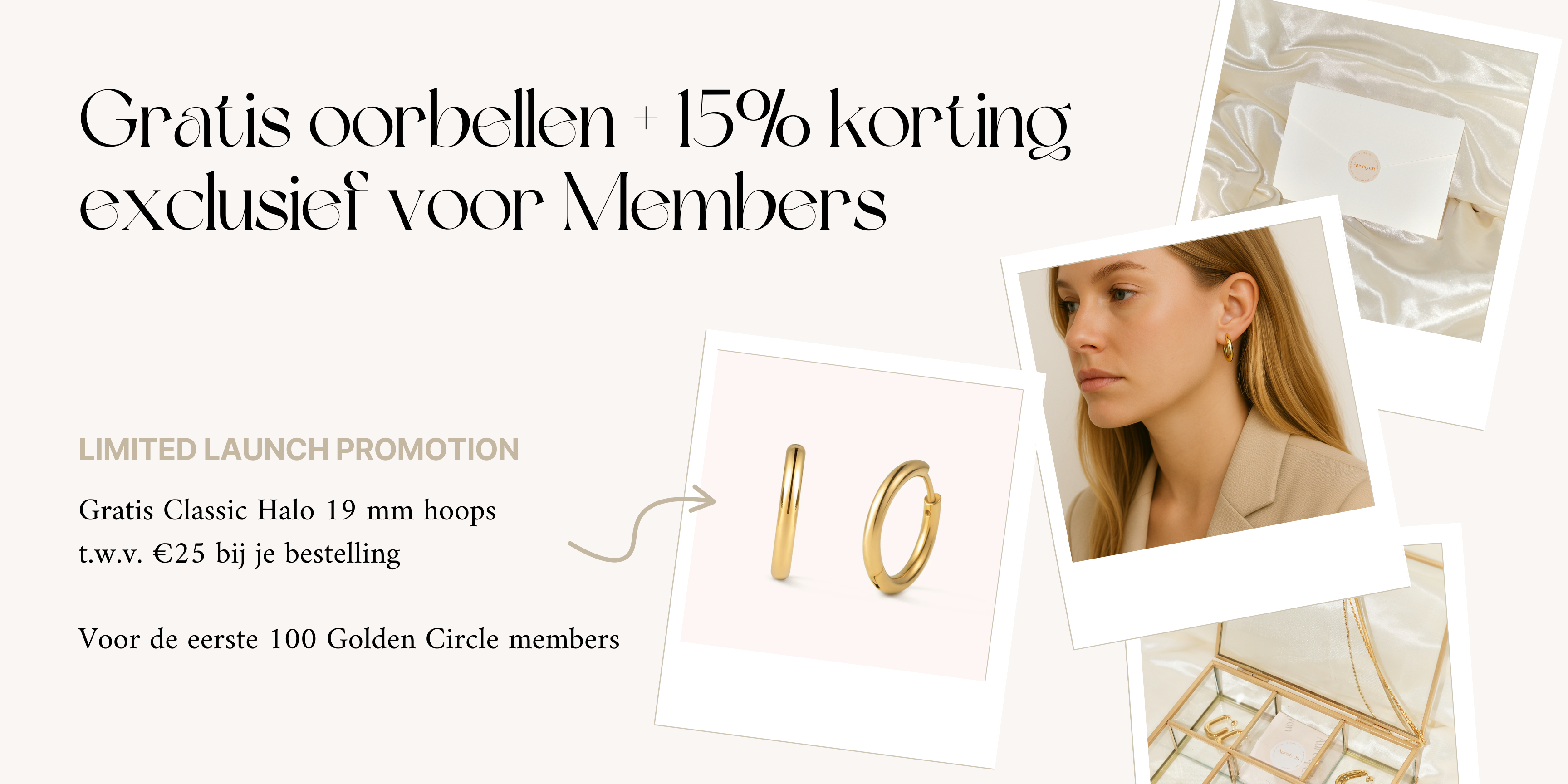 Ontvang gratis Classic Halo oorbellen (19 mm Hoops t.w.v. €25) bij je bestelling! Dit is een speciale, tijdelijke actie voor onze eerste 100 nieuwsbrief members of Instagram-volgers.
