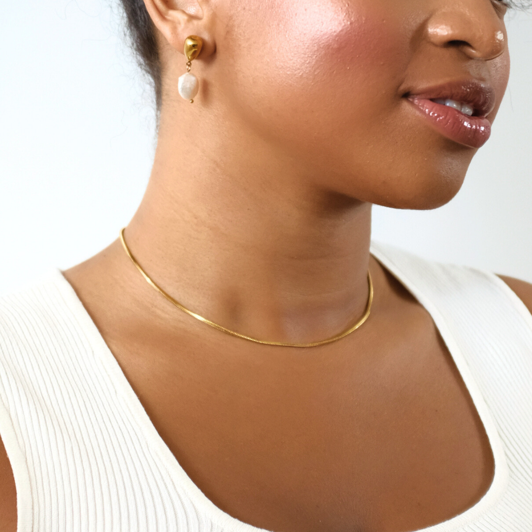 De Filo ketting is strak en minimalistisch, een ode aan tijdloze eenvoud. De vloeiende lijn straalt moderne elegantie en ingetogen klasse uit—een subtiele blikvanger. De Filo is 1.5 mm dik.