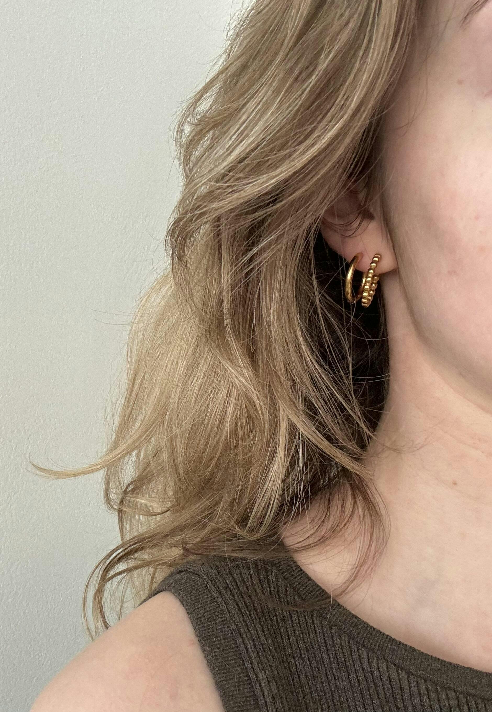 De Orbia Beaded Hoops combineren een klassieke vorm met een speelse textuur. Het verfijnde, gebalanceerde ontwerp biedt een eigentijdse kijk op traditionele hoepeloorbellen.