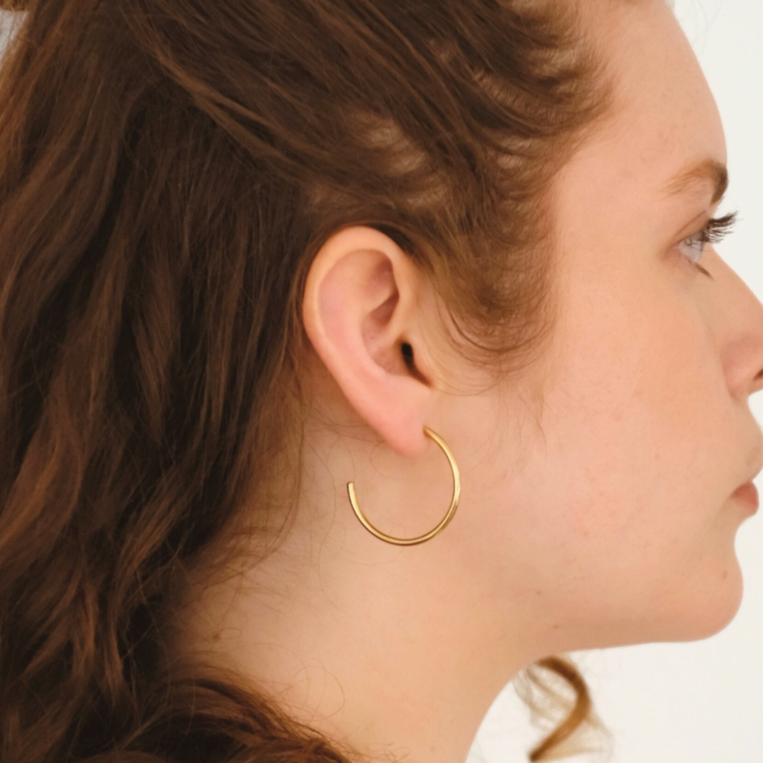 De Vala Hoops symboliseren openheid en vrijheid. Hun minimalistisch, open ontwerp is eenvoudig maar krachtig—de ultieme vertaling van moeiteloze elegantie in een moderne, vergulde oorbel.